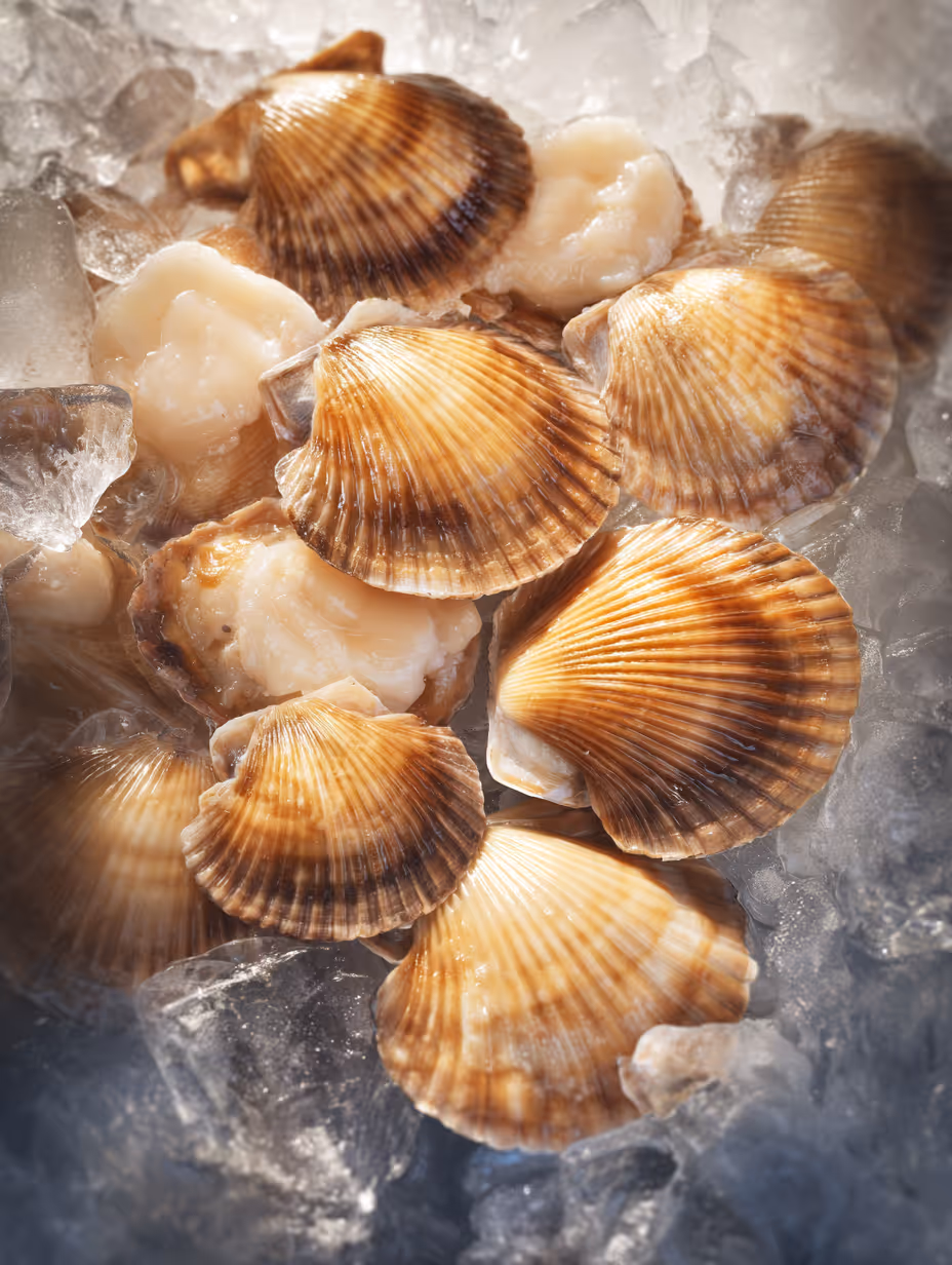 Mollusks and bivalves are a classic complement to any seafood catalog — elegant, versatile, and recognized globally for their culinary value. This gallery features Scallops (Vieiras), Zamburiñas (Baby Scallops), Razor Clams (Navajas), Mussels (Mejillones), Clams / Cockles (Almejas / Berberechos), and Oysters (Ostras), offering a mix of premium and accessible varieties suited for restaurants, wholesalers, and gourmet distributors.